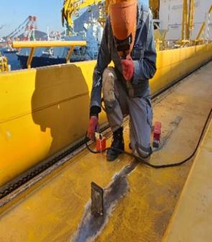 ▷ Grinding on welding area
